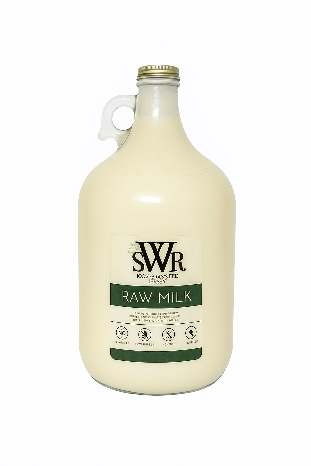 Our SWR Raw Milk Gallon offers 100% grass-fed A2A2 milk, sourced from cows raised on natural pasture. This raw milk retains its natural enzymes and nutrients, providing a rich, wholesome flavor and enhanced digestibility. Ideal for those seeking high-quality, minimally processed dairy, it supports overall wellness with its unique A2A2 protein profile.